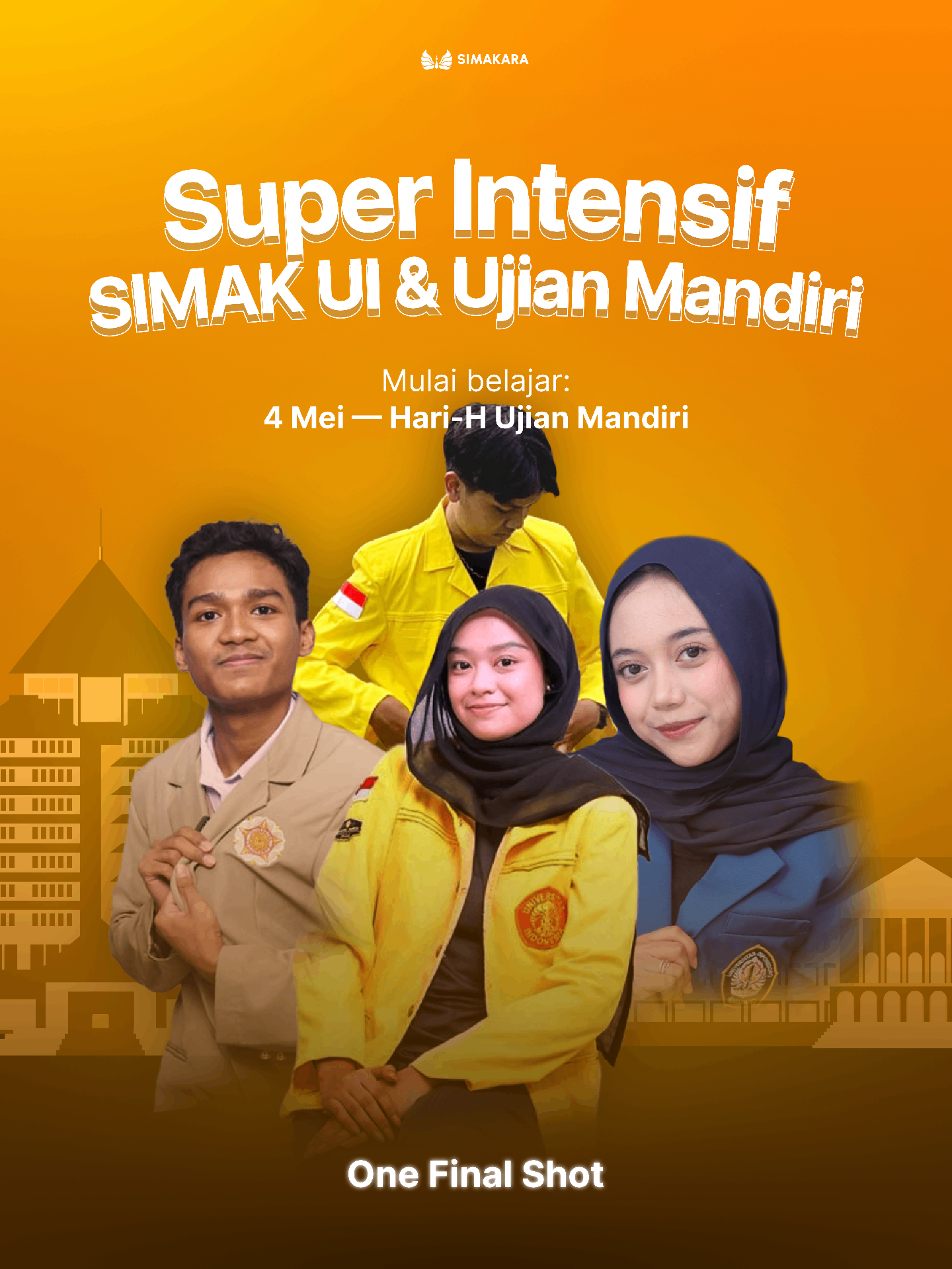 Persiapan SIMAK UI & Ujian Mandiri 2026 resmi dimulai! Gunain kode "KAMUHEBAT" buat potongan harga. Mulai belajar 4 Mei